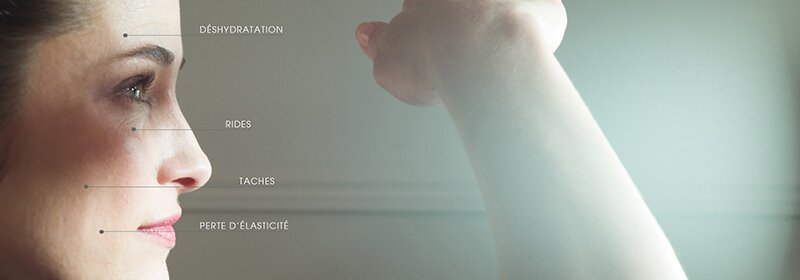 Avec l’âge, le cycle de renouvellement des cellules de la peau ralentit et les effets de la lumière quant à eux accélèrent son vieillissement. Ils créent des dommages apparents : la sécheresse cutanée et la déshydratation en sont les premiers signes, qui sont à l’origine de rides et de ridules plus marquées, d’irrégularités pigmentaires et de perte de fermeté.